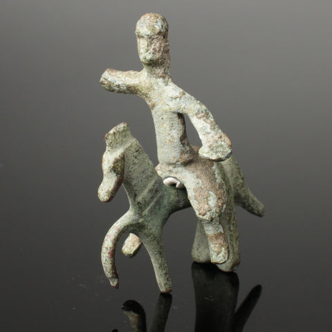ANCIENT CELTIC BRONZE HORSE & RIDER FIGURE - CIRCA 50BC