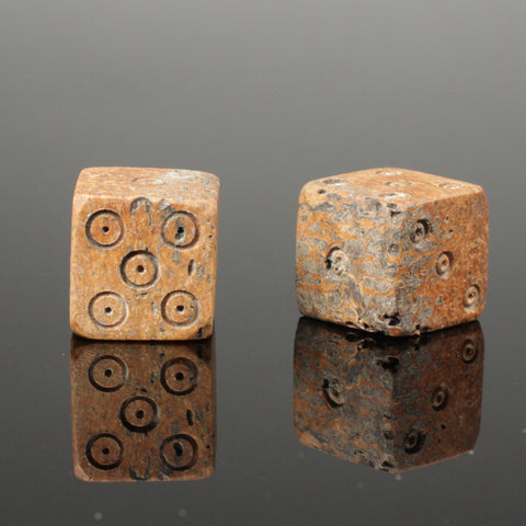 FABULOUS PAIR OF ANCIENT CARVED BONE DIE